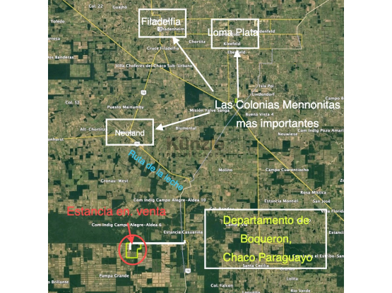 EN UNA DE LAS ZONAS MAS PRODUCTIVAS DEL CHACO, RODEADA DE ESTANCIAS MENNONITAS QUE PRODUCEN CARNE, LECHE Y AGRICULTURA.