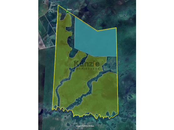 El limite sur de la propiedad es un riacho con agua permanente (riacho Yhu), y además tiene dos causes menores que desembocan en el riacho, pero atraviesan la propiedad de noreste a suroeste.
